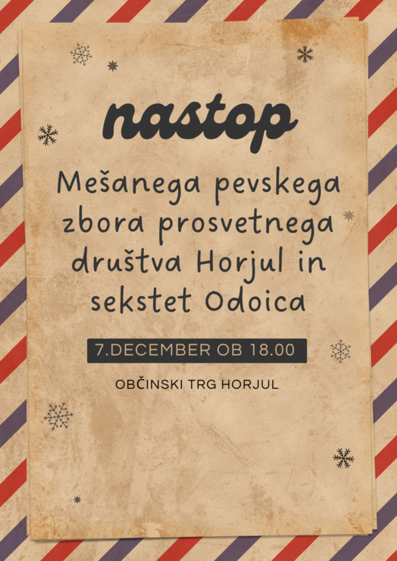 V nedeljo, 7.12.2025 bo po trgu odmevalo petje Mešanega pevskega zbora prosvetnega društva Horjul, po njihovem nastopu pa se nam na odru pridružijo še sekstet Odoica.
