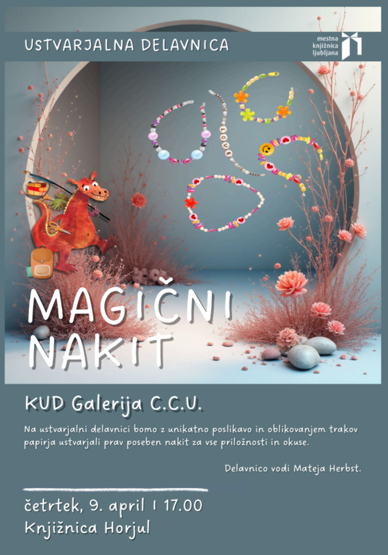 Vabimo vas na ustvarjalno delavnico MAGIČNI NAKIT, ki bo v četrtek, 9. APRILA, ob 17. uri v knjižnici Horjul.