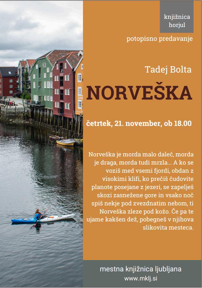 Vabimo vas na potopisno predavanje Norveška, ki bo v četrtek, 21. novembra 2024, ob 18. uri, v Knjižnici Horjul.