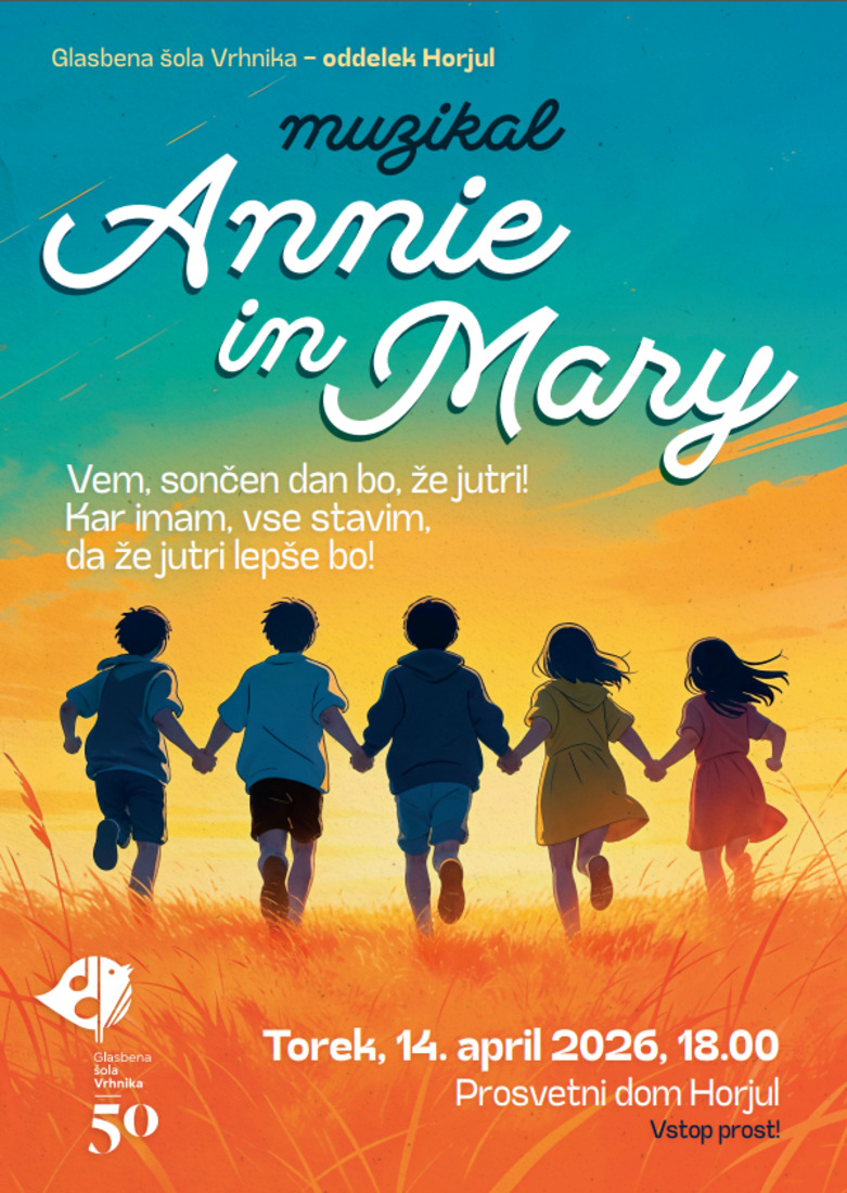 Vabimo vas na predstavo letošnjega muzikala glasbene šole v Horjulu. Muzikal v novi sezoni nam prinaša zgodbo o Annie in Mary, polno upanja v boljši jutri in spodbudnih trenutkov povezanosti.