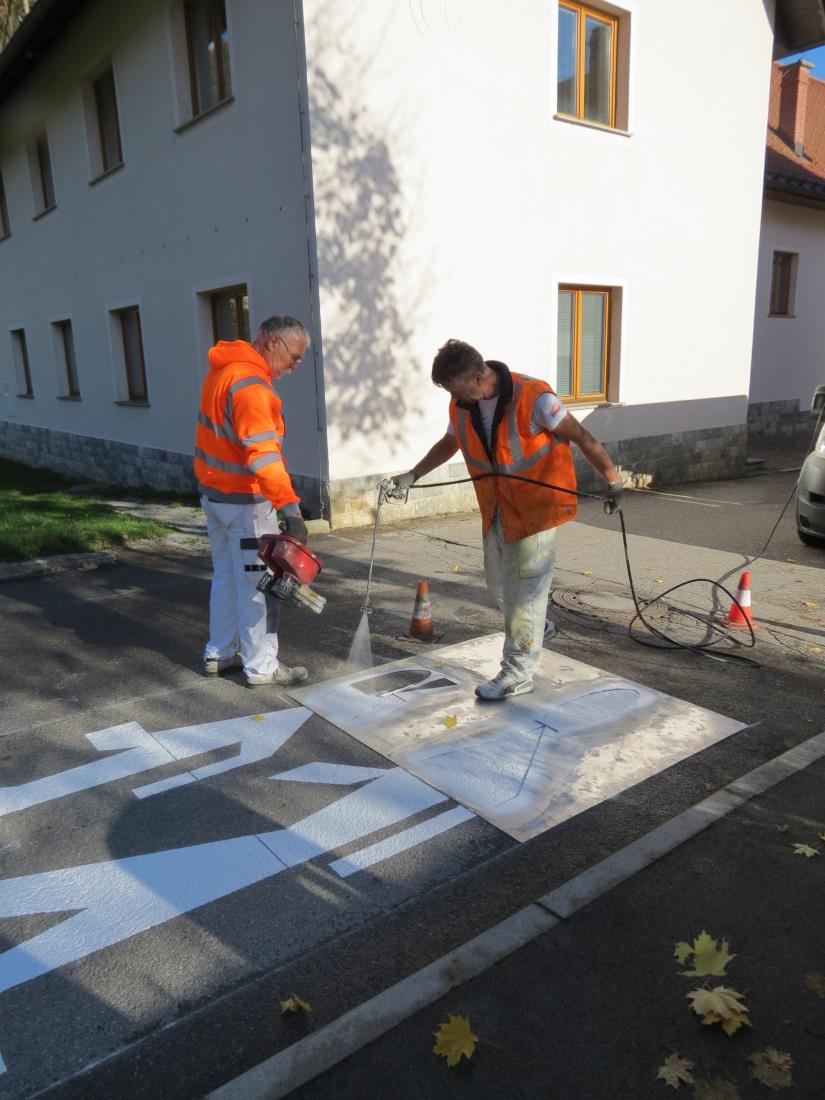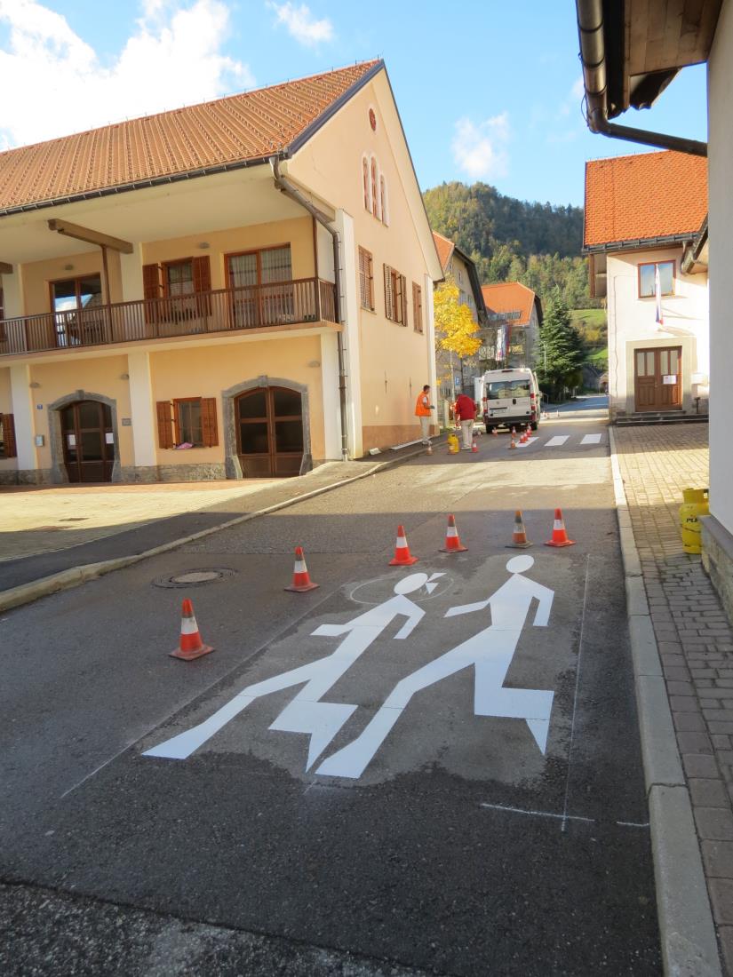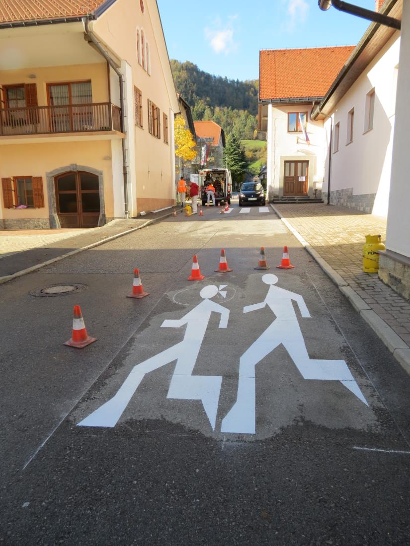 Zaradi varnega prečkanja cestišča se je na Slovenski cesti v četrtek, 7.11.2019 na novo izvedel prehod za pešče in talne označbe, ki nakazujejo otroke na cesti.