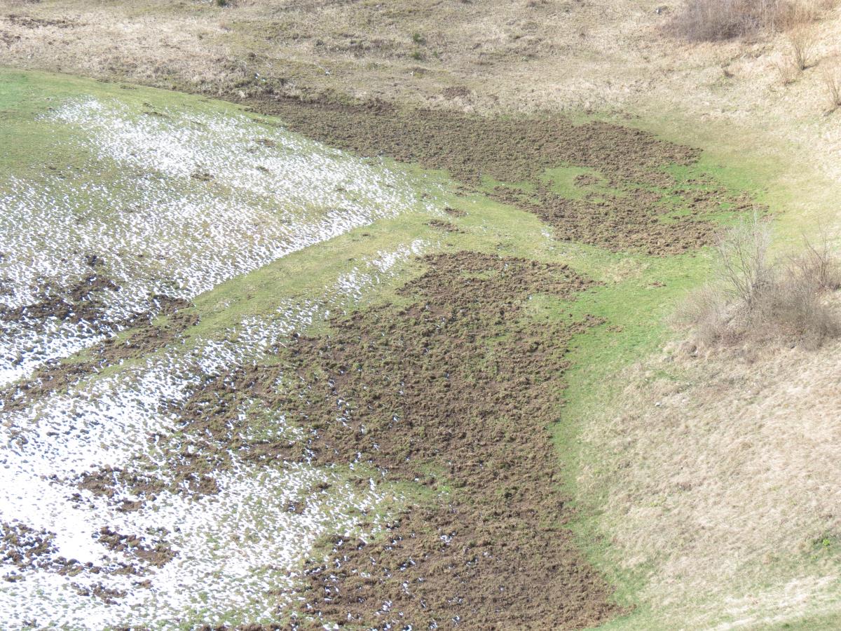 (Naslovna fotografija je nastala v vasi Samotorica, marca letos. Na njej se kaže delo divjega prašiča.)